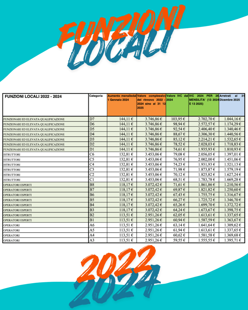 Con la firma dell’ipotesi di contratto 2022-2024 per il comparto Funzioni Locali, si chiude un triennio di vacanza contrattuale e si definiscono gli incrementi economici spettanti ai dipendenti di Comuni, Province e Città metropolitane.
